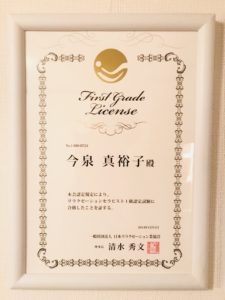 ・リラクゼーションセラピスト1級